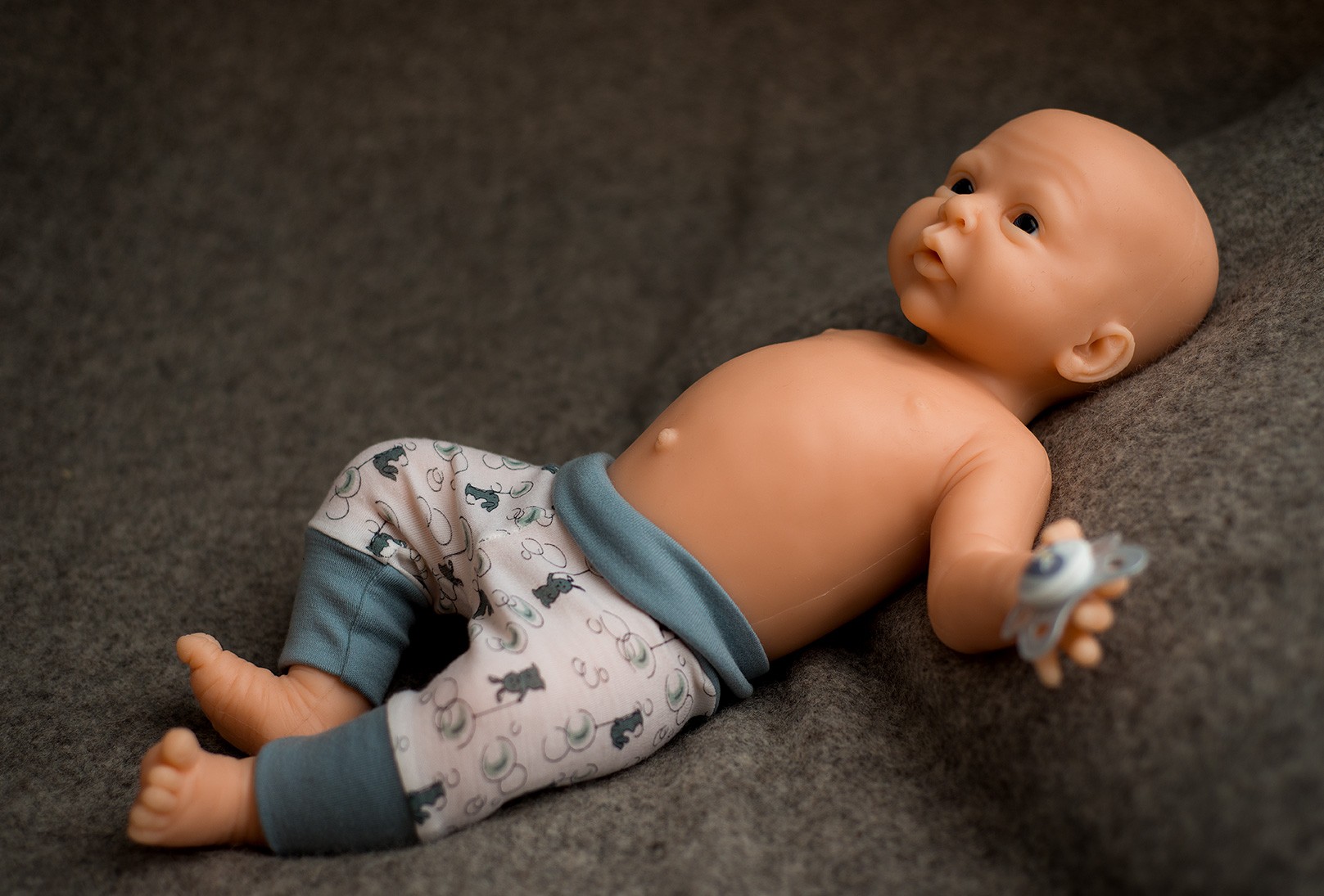Leif ist definitiv ein Junge, naturalistisch ausgeformt. Die Finger seines linken Händchens sind vollständig voneinander getrennt und auch die rechte Hand ist bis auf Ring- und kleinen Finger flexibel beweglich.