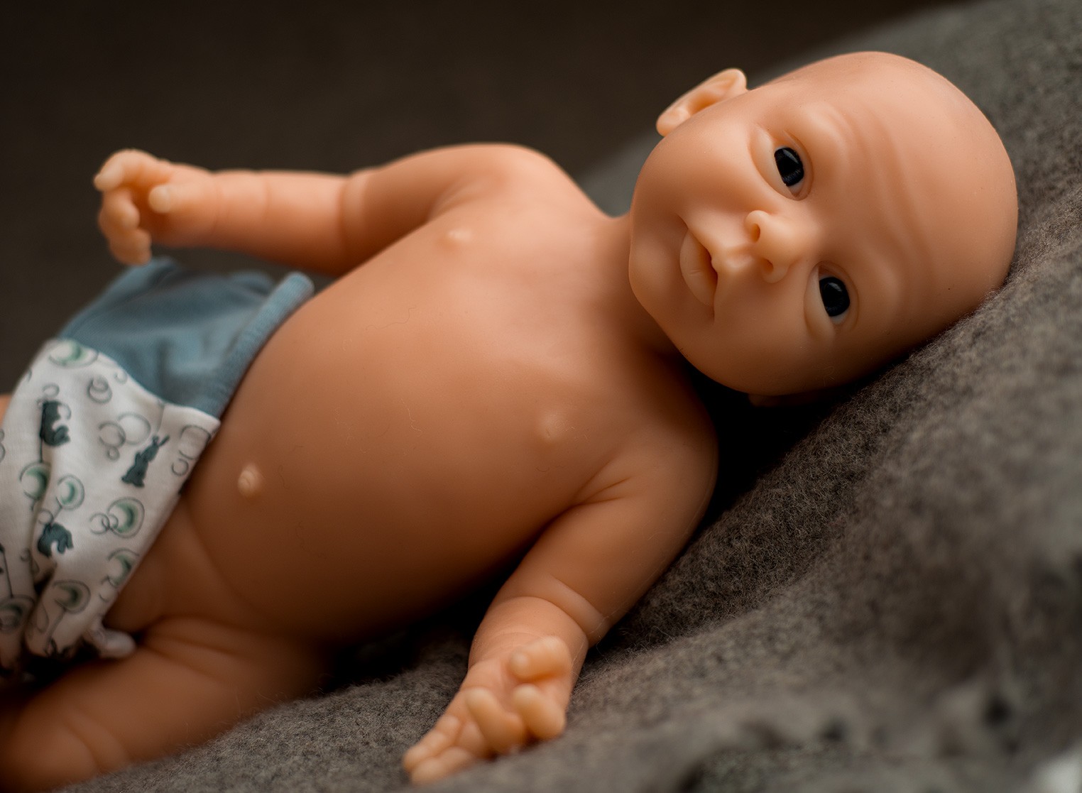 Jedes unserer Vollsilikon-Babys wird manuell, in einer handgefertigten Form, vergossen. Deshalb können sich kleine "Mikrosilikonbläschen" auf der Haut befinden. Diese sind durch gründliches Waschen und abzupfen mit der Pinzette leicht zu entfernen. Kleinste Luftbläschen sind ebenfalls materialtypisch und werden, soweit möglich, von uns beseitigt.