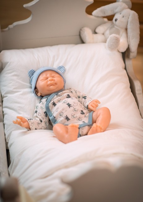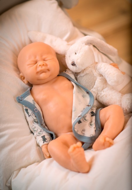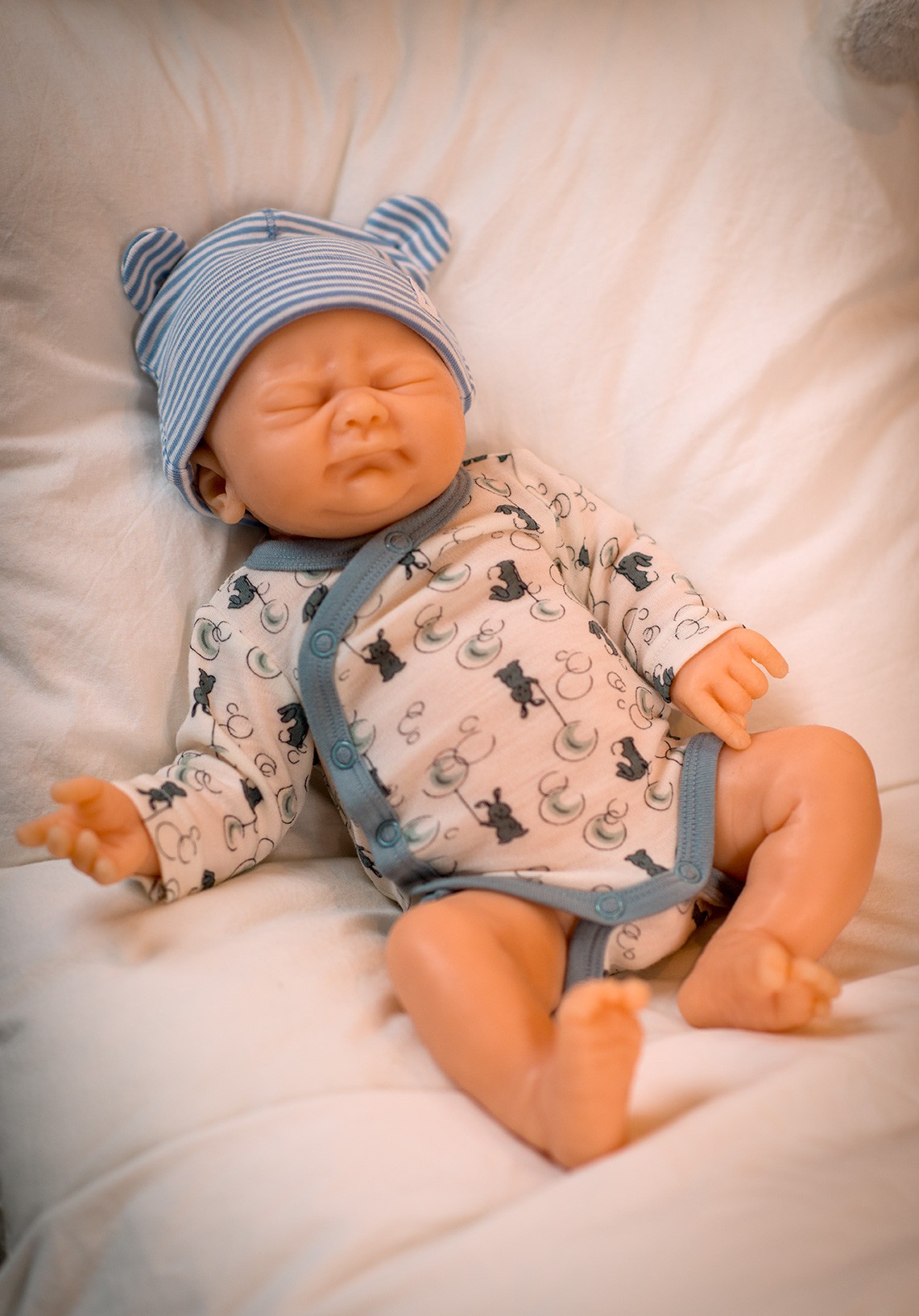 expressive face, to the tiny wrinkles on the small hands and feet, Fiete is just like a newborn. He is suitable both for expectant mothers who want to practice handling a baby, collectors of lifelike dolls and also for teaching midwives. Little Fiete awakens real maternal feelings and the protective instinct in you. The BALTIC BABY© Fiete is lovingly handcrafted in Germany.