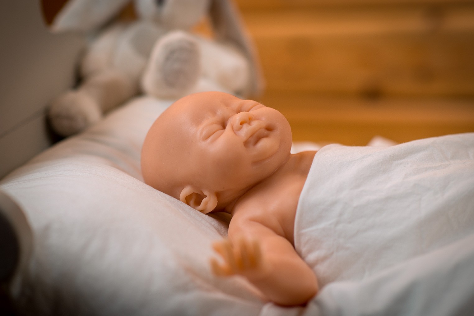 The craftsmanship process requires a micro seam that goes all the way round the baby and a small, flat area on the head where the silicones are filled in. Both are quality features of BALTIC BABY©, as we always cast in two-piece moulds.
